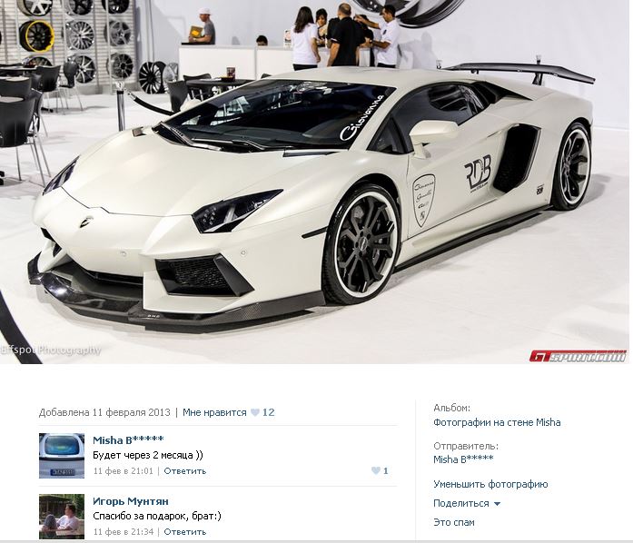 Также, опять же судя по ВКонтакте, Михаил нередко дарит суперкары "братьям".