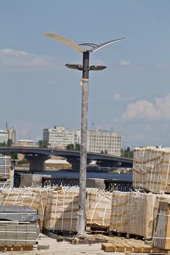 На текущий момент на набережной уже установлено 24 светильника с оригинальными плафонами в виде двух лепестков.